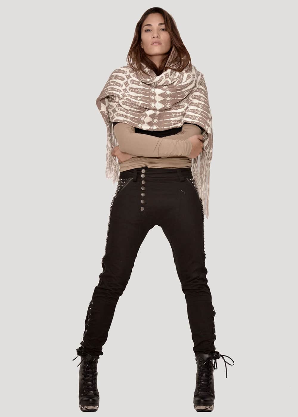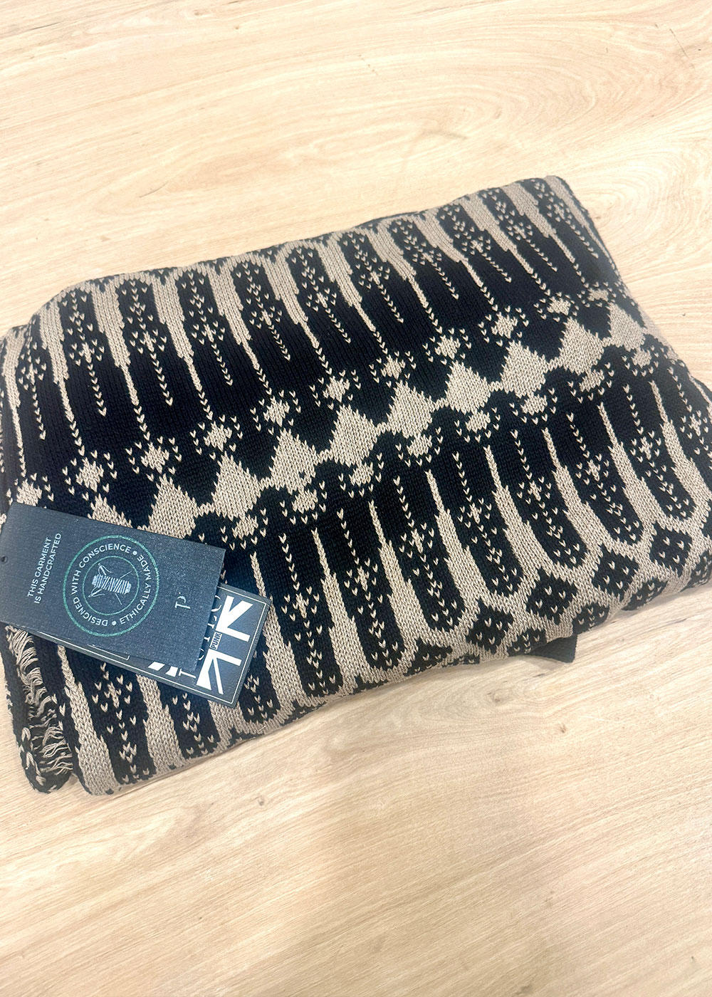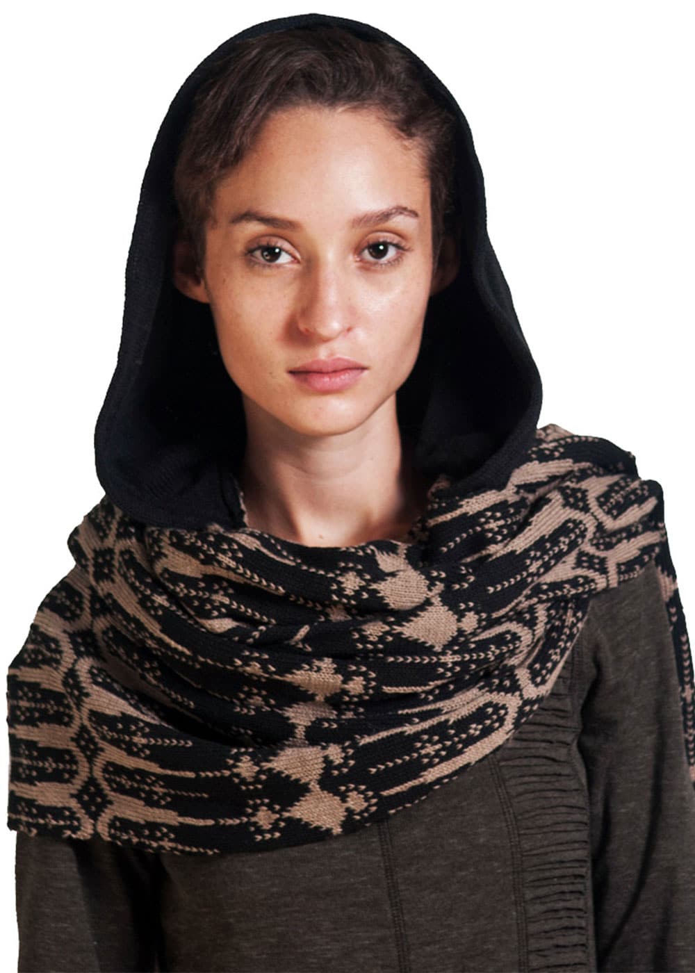 The Tribal Hooded Scarf isn’t just a scarf—it’s a whole vibe. Hand-knitted in a bold tribal-inspired pattern, with luxurious tassels, extra length, and a deep hood for maximum cozy drama.