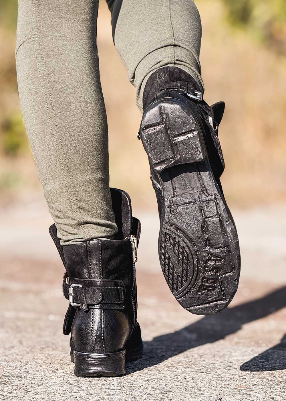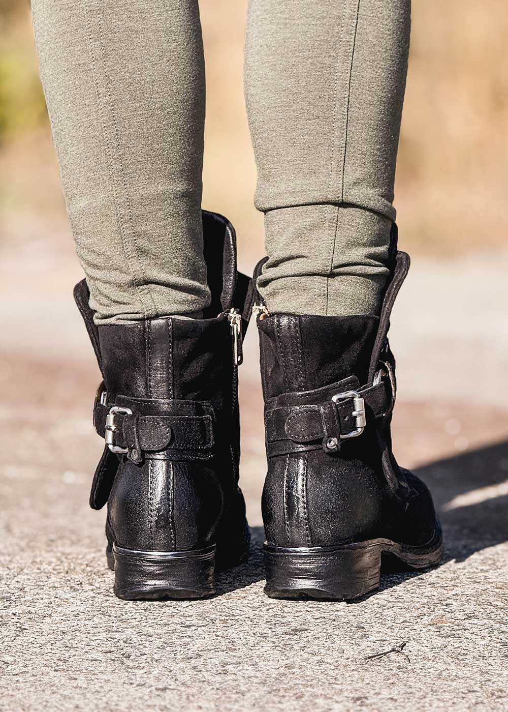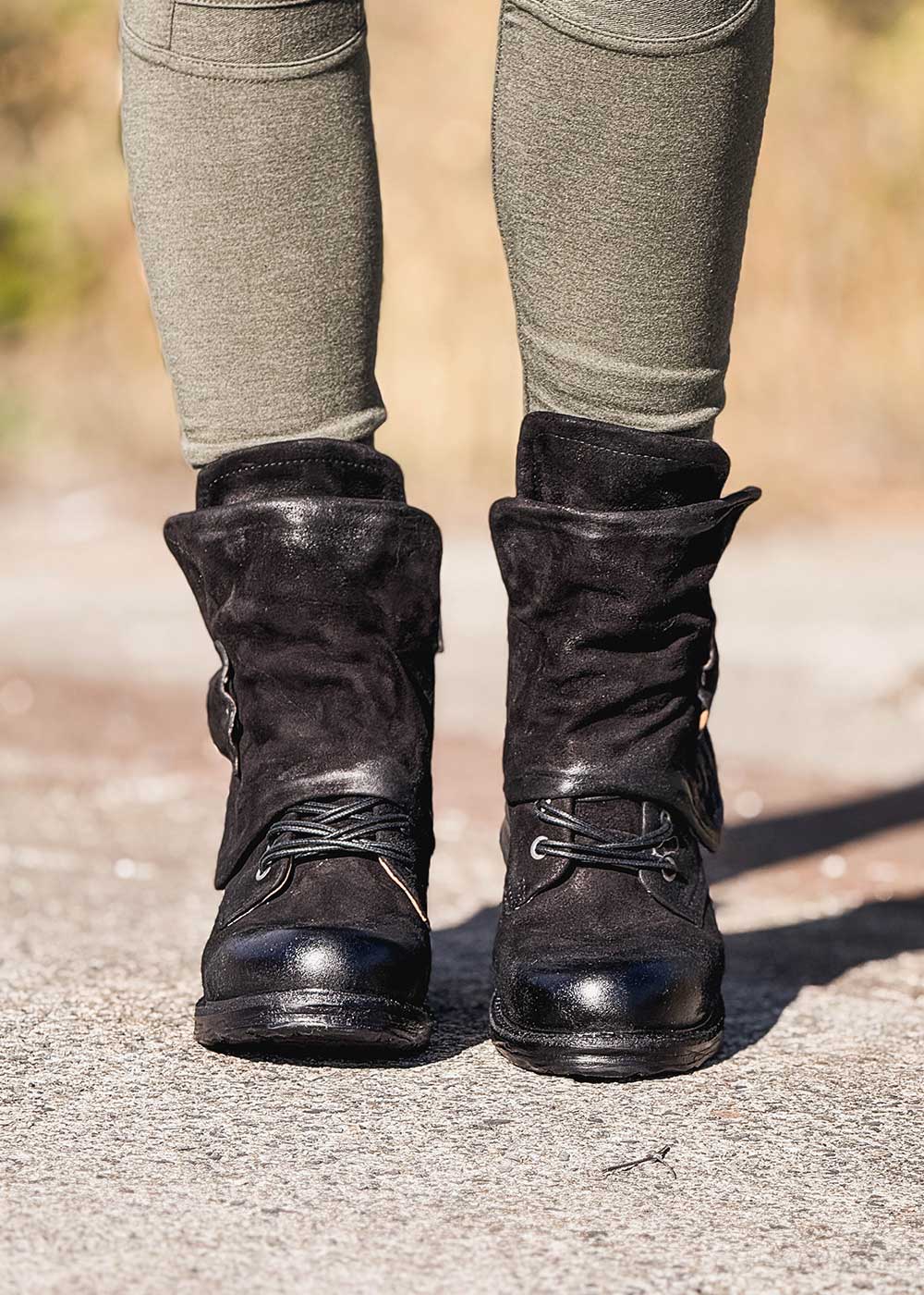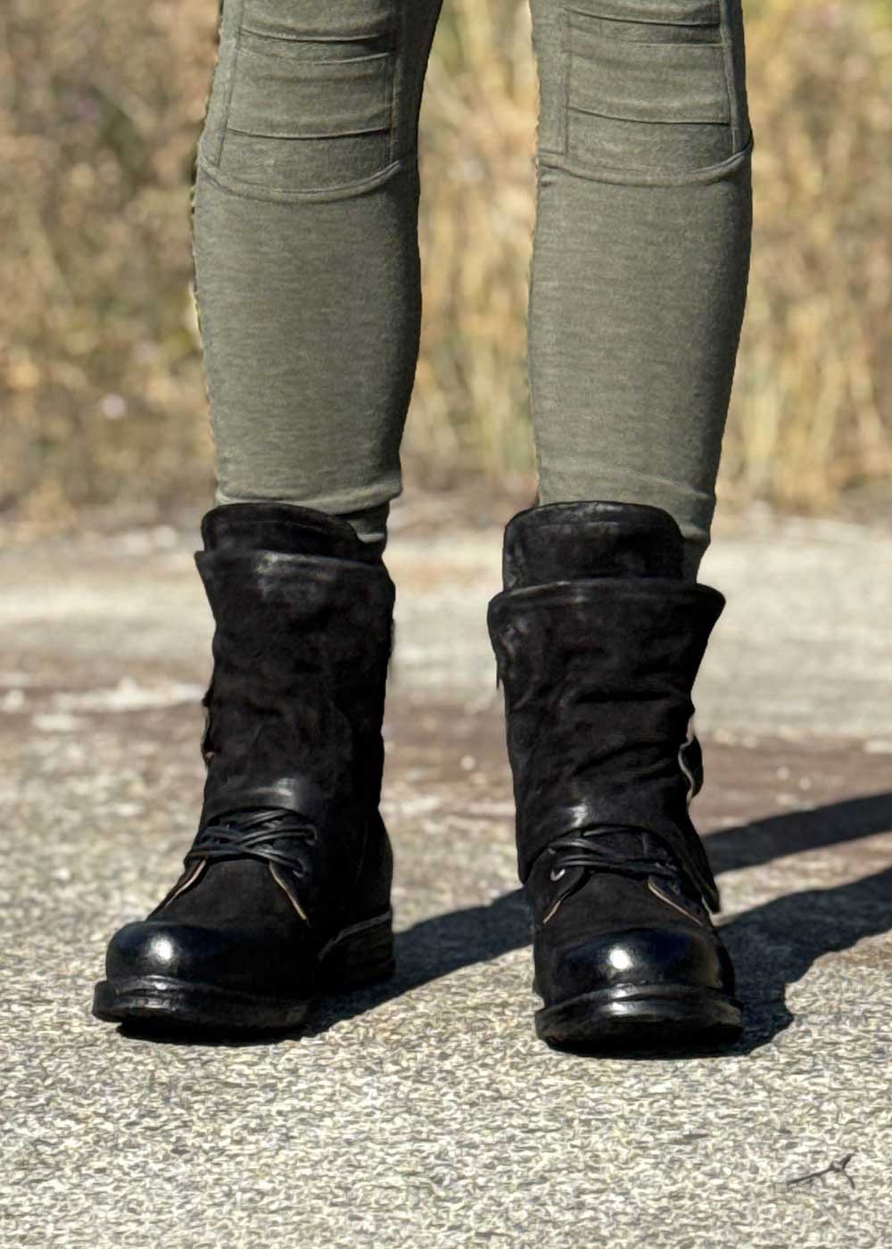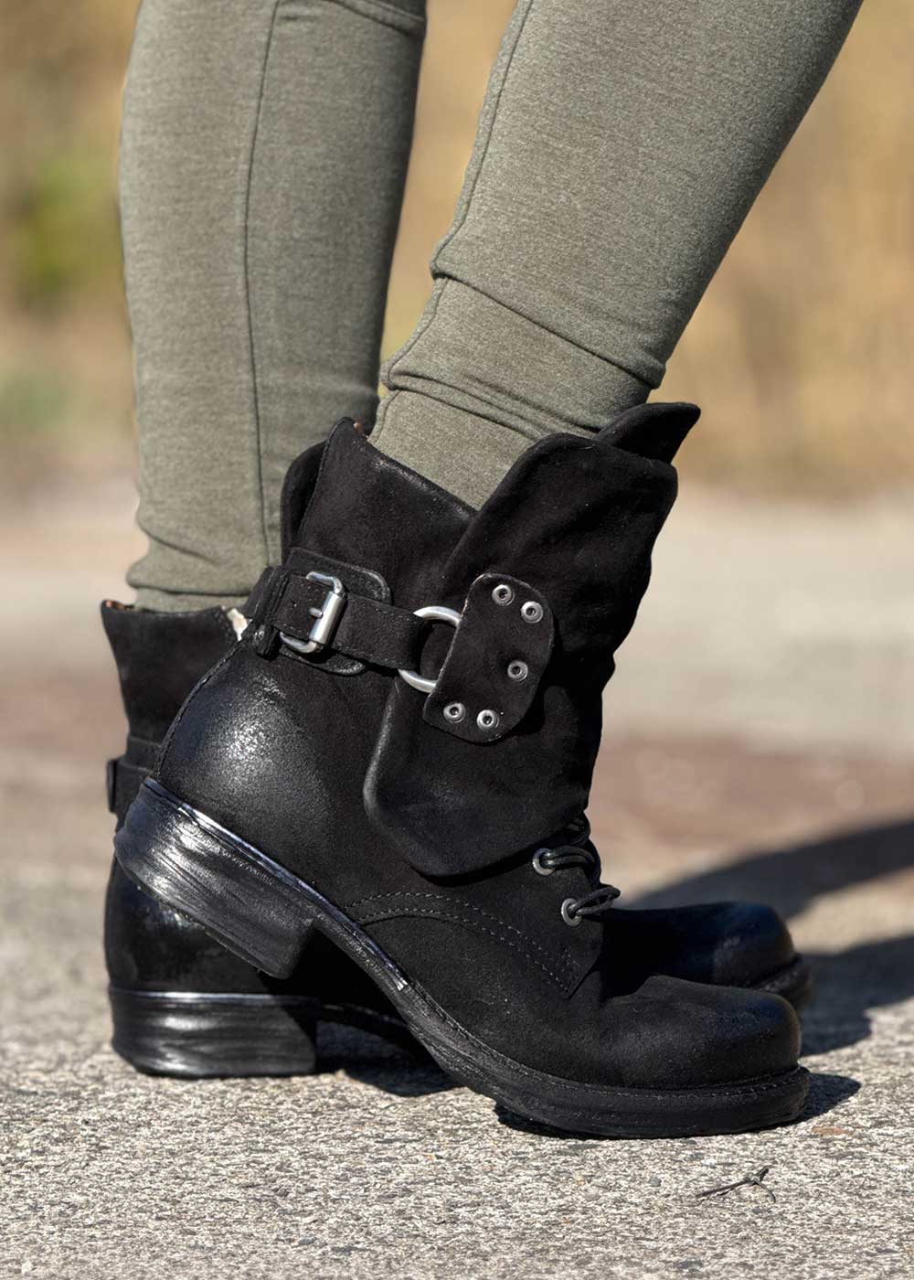The Legion ankle boots from AS.98 are crafted from genuine leather, blending classic charm with an effortlessly edgy vibe. Adding a unique touch, these boots feature accented suede textures that create a striking contrast, elevating their design. Featuring stylishly rounded toes, a convenient side zipper, and a low, comfortable heel, these boots are all about subtle cool. The leather flap covering the laces, accented with a sleek metal buckle, adds a unique twist, while the tongue can be worn up or down for versatile styling. These boots are a must-have for those who value both fashion and function.