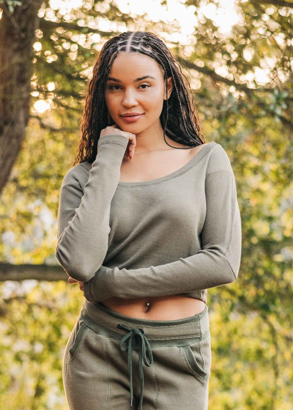 This cute cropped batwing long sleeve is now rocking our cozy organic cotton and bamboo waffle fabric, in our new GARMENT DYE. Perfect for all your mind-bending, soul-expanding adventures, it’s designed to be your go-to for easy layering. Wear it solo for a laid-back vibe or throw it over a tank or tee when the temps drop. With a loose scoop neck and extra-long sleeves you can pull down on chilly days, it’s equal parts comfy, cool, and effortlessly versatile.